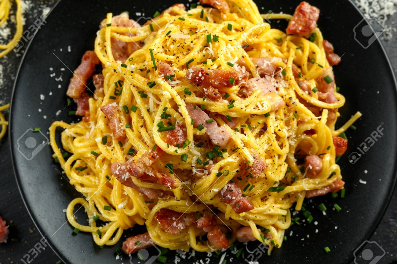 Les Pates Spaghetti Carbonara Avec Jambon Et Bacon Creme Poivre De